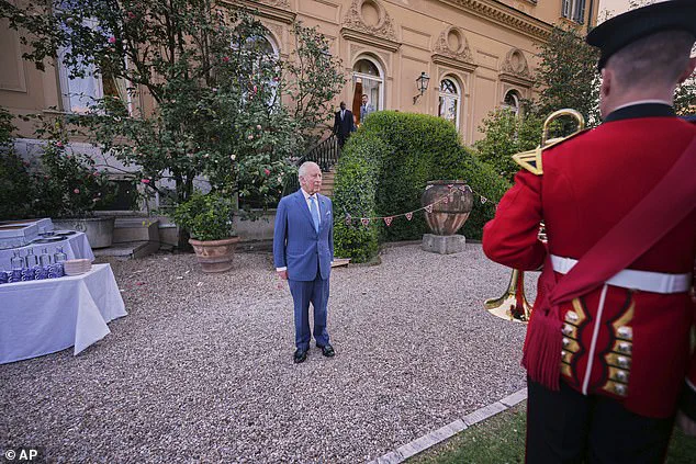 The Welsh Guards and the Sassari Brigade Band performed a series of musical pieces, including the theme song from ‘Gladiator,’ to highlight the close military ties between Britain and Italy—a central theme of their four-day state visit.