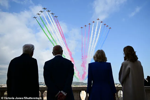 This flypast showcased the Frecce Tricolori—Italy’s elite air force aerobatic team—and their British counterparts, the Red Arrows.