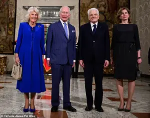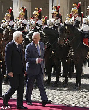 During their meeting in the Sala dei Colloqui, President Mattarella (who is pictured with King Charles) noted the monarch’s frequent visits to Rome over the years.
