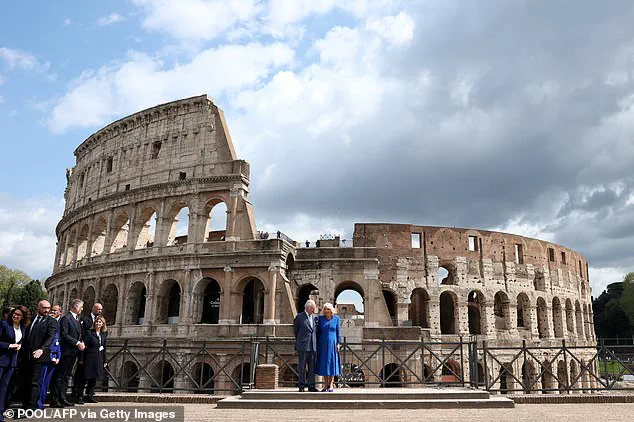Even on a bustling day, King Charles and Queen Camilla made their way to view one of Rome’s most iconic landmarks—the Colosseum.