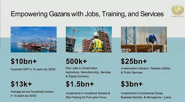 The plan, which includes a seaport and airport, aims to revitalize the war-torn region but has been criticized for its lack of detail on humanitarian needs. ‘This is a market-driven approach, not a humanitarian one,’ said a UN official, who questioned whether such a model would benefit ordinary Gazans.