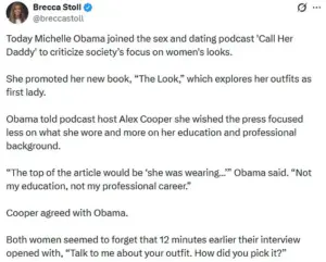 Ultimately, Obama’s interview underscores the enduring challenges faced by women in positions of power, who are often judged as much for their appearance as for their achievements.