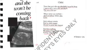 The victim’s account includes a pregnancy scan dated to 20 weeks’ gestation, accompanied by the haunting words: ‘She is gone and she won’t be coming back.’ She recounts the birth in visceral detail, describing the medical procedures and the moment she saw her newborn daughter. ‘I saw between her fingers this tiny head and body in the doctors hands,’ she wrote. ‘It reached its tiny arm up and had a tiny foot.’ Yet, she claims, she only experienced ’10 to 15 minutes’ with her child before she was forcibly taken away. The diary captures her anguish: ‘Where is she? Why did she stop whimpering?’