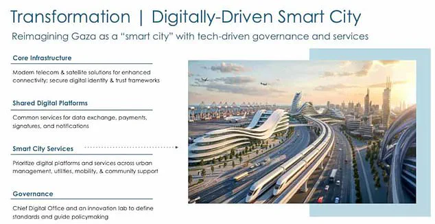 The plan, which includes a seaport and airport, aims to revitalize the war-torn region but has been criticized for its lack of detail on humanitarian needs. 'This is a market-driven approach, not a humanitarian one,' said a UN official, who questioned whether such a model would benefit ordinary Gazans.