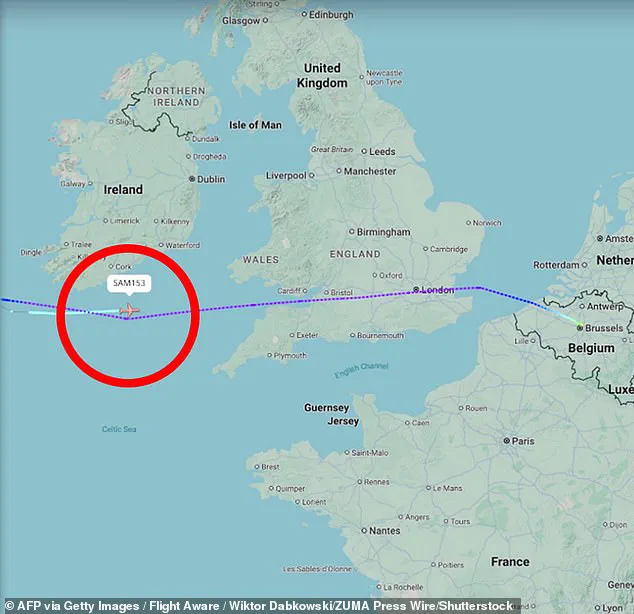 Flight Radar data revealed that the Boeing C-32A declared an emergency while flying over the Atlantic, prompting a return to the UK.
